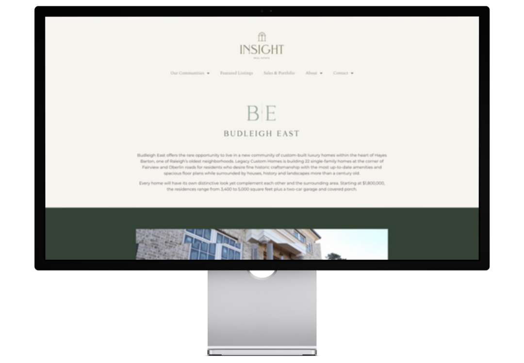 Website, Signage & Print MaterialsOnce the brand direction was established, we designed and built the Budleigh East property page as a dedicated subpage within Insight Real Estate’s website. The experience was intentionally clean and editorial, allowing the architecture, location, and lifestyle to take center stage while maintaining alignment with Insight’s broader digital presence.