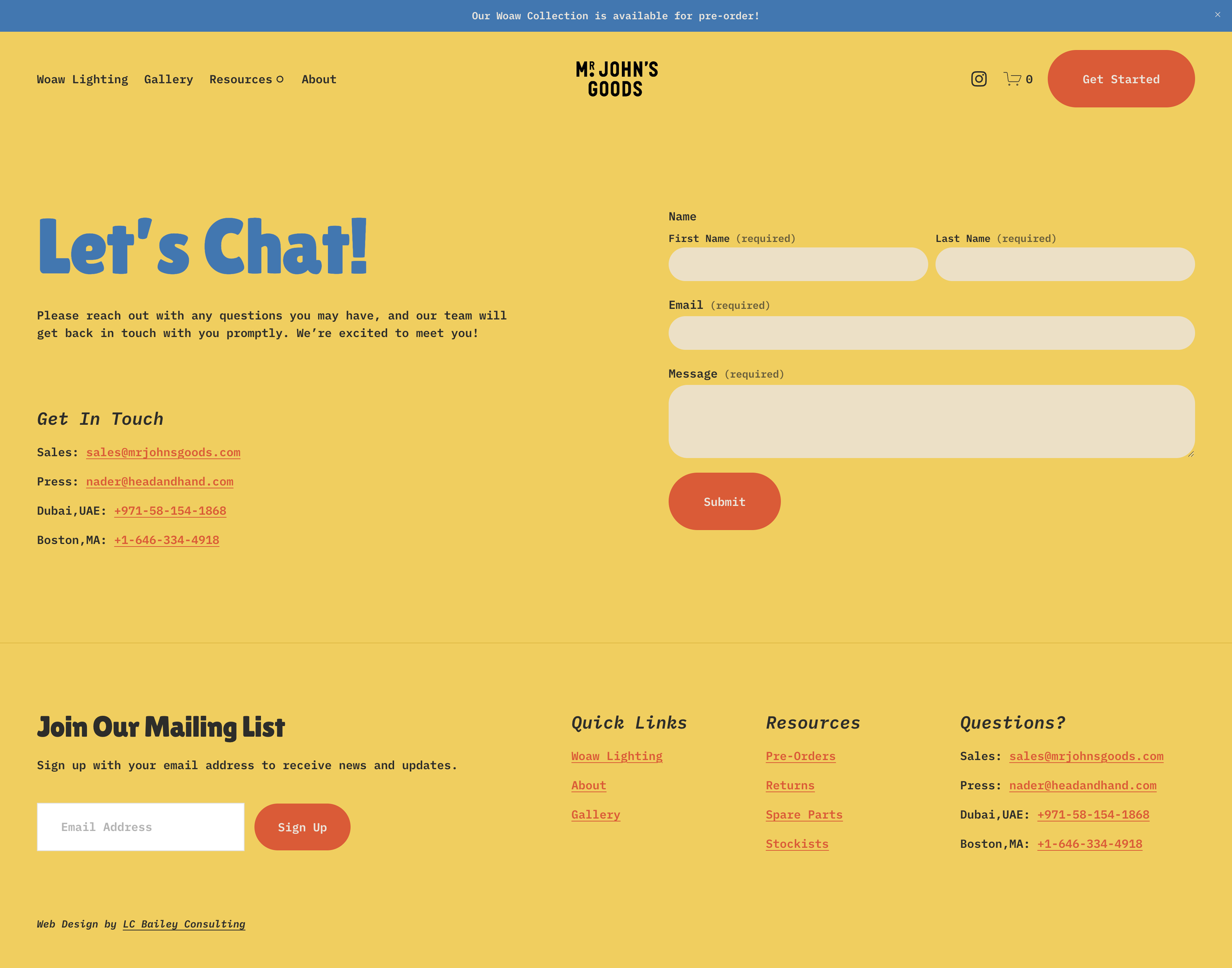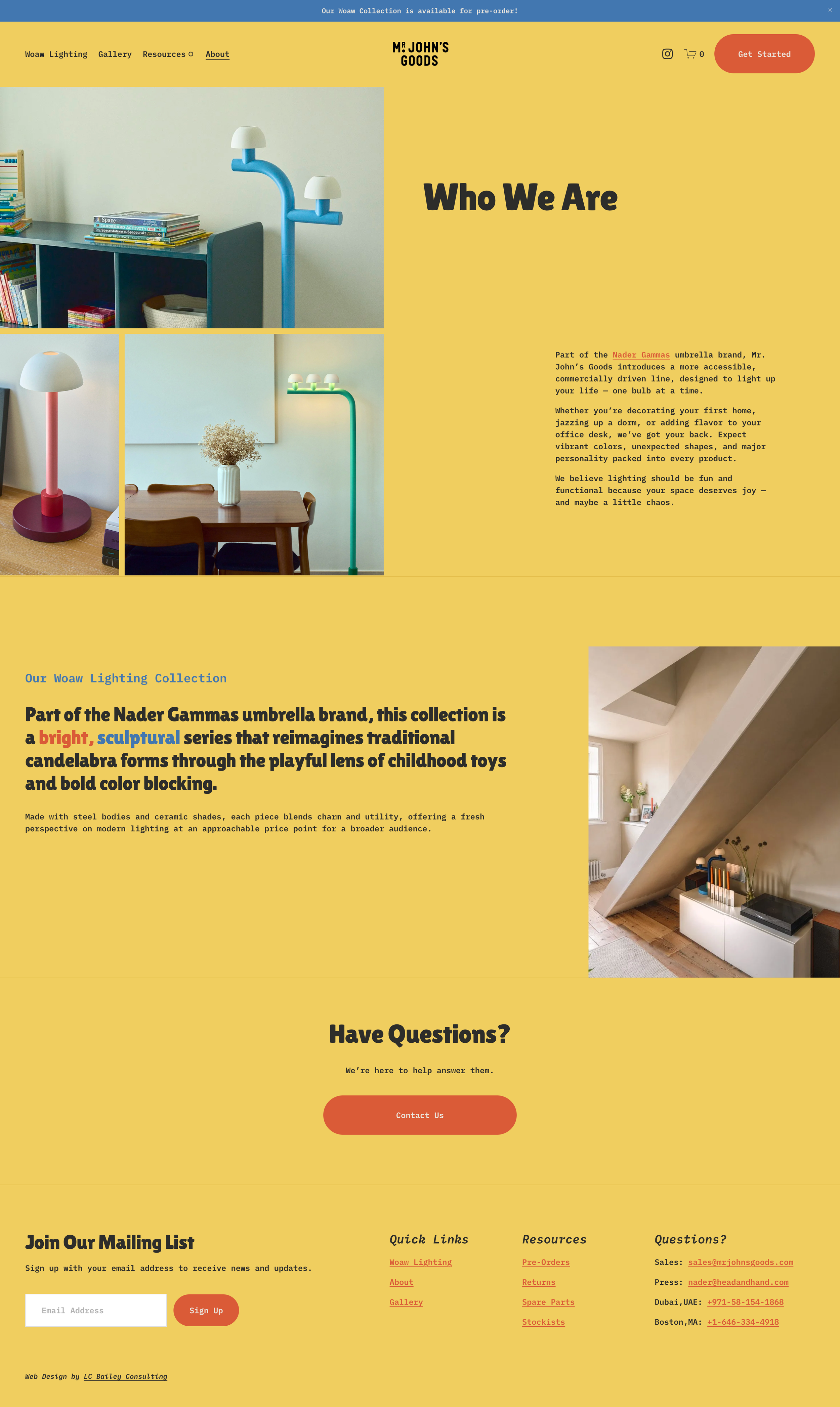 The refreshed website delivered a bold, market-ready digital presence that accurately reflects the personality and commercial goals of the Mr. John’s Goods brand. With a streamlined pre-order process and a clear, intuitive user experience, the site is now positioned to support early demand while scaling alongside future product launches.