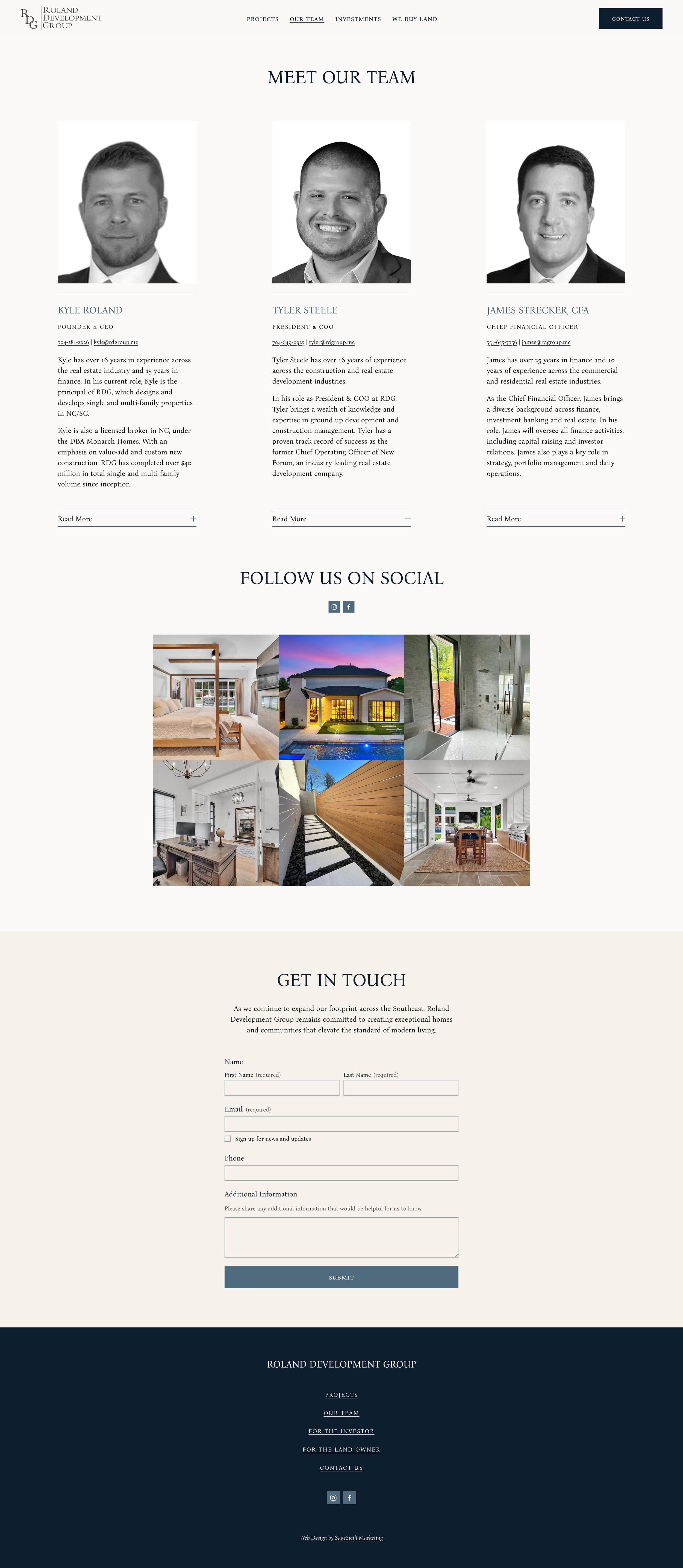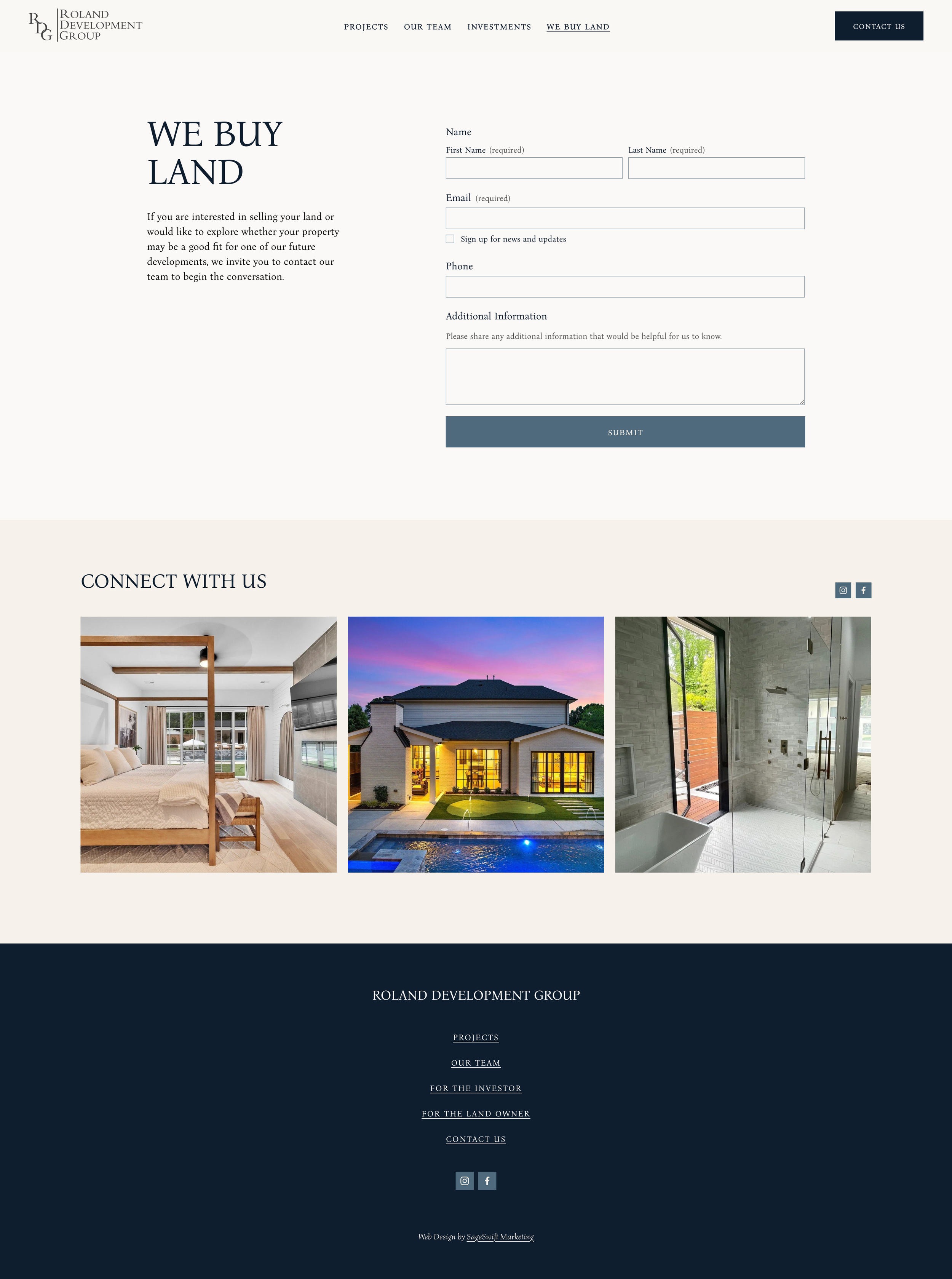 Getting StartedThe client’s website needed a full refresh to allow for their current growth, so we came in to help them rebuild a clean, professional website that was in line with their existing brand and visual identity. The site features a sleek homepage paired with thoughtfully structured pages for projects, team, investments, land opportunities and contact. The result is a seamless digital experience. We brought to life the digital experience of a responsive, mobile-friendly website that will allow them to scale.