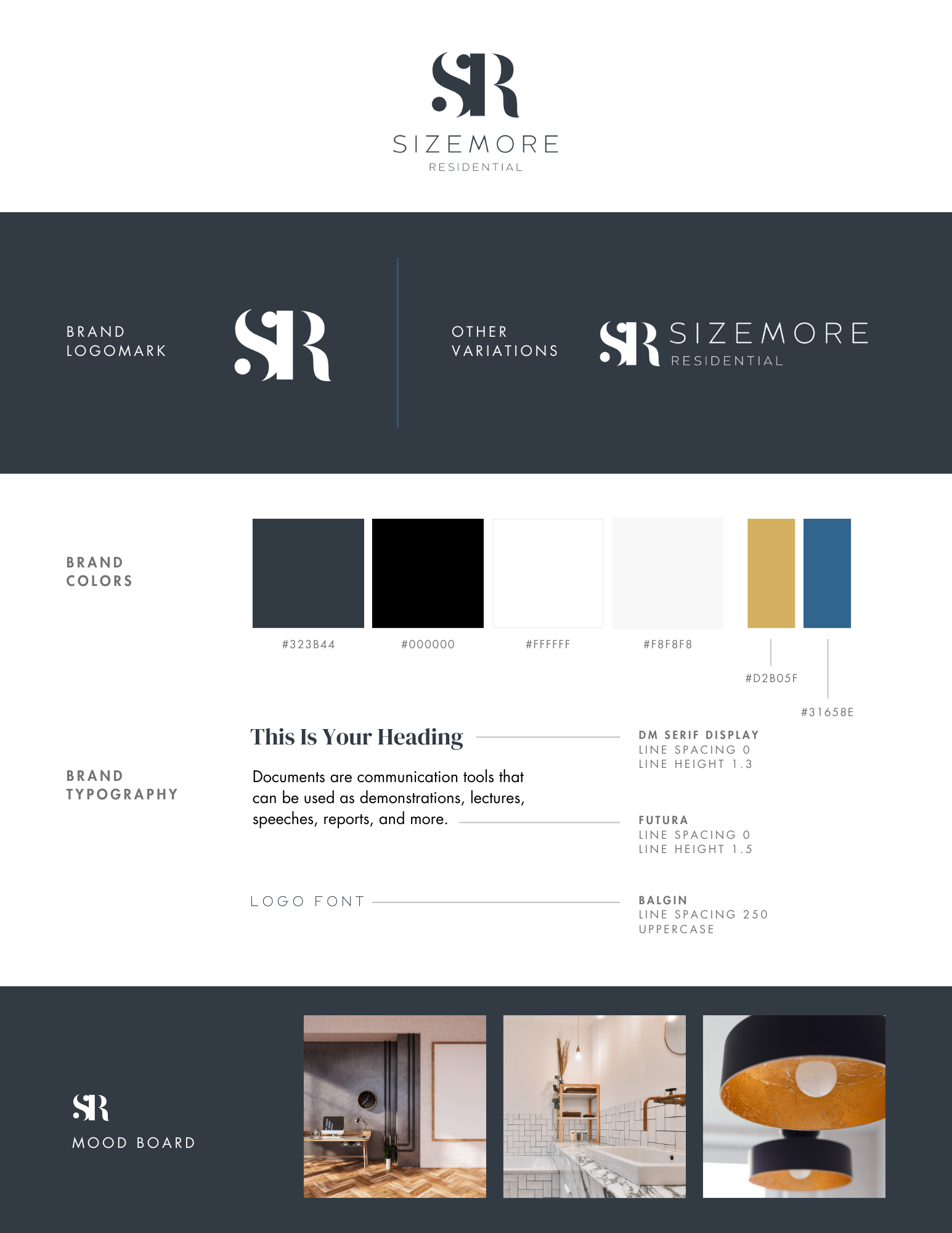 We partnered closely with the Sizemore Residential team to recreate their brand from the ground up. This included the development of a modern, clean, and sleek logo supported by a refined typography system and a sophisticated, neutral-forward color palette. Together, these elements established a cohesive brand identity designed to feel confident, professional, and enduring.